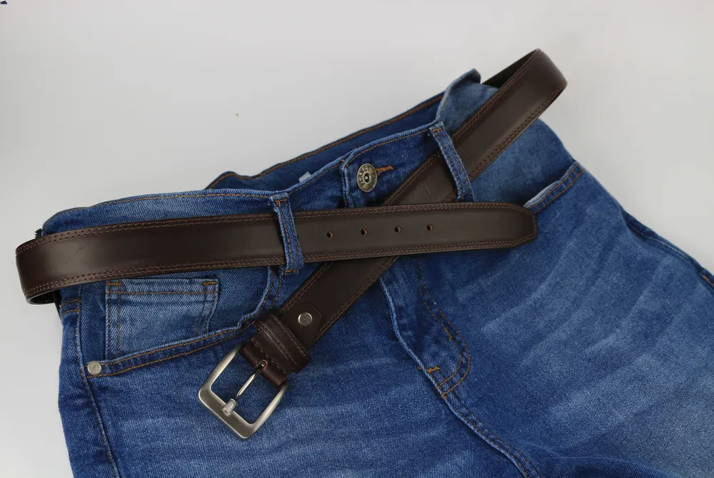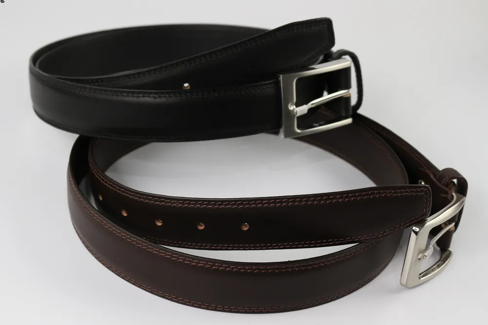 This Two-Row/Double Stitched Leather Belt is skillfully crafted from top-grain cowhide leather, ensuring a durable and versatile accessory. Its utility extends beyond just suit or dress pants, making it a stylish addition to denim, slacks, or chinos. Crafted from a single, impeccable piece of top-grain vegetable-tanned leather, this belt is designed to withstand the test of time, and our commitment to quality means avoiding low-grade bonded or Genuine Leather alternatives.